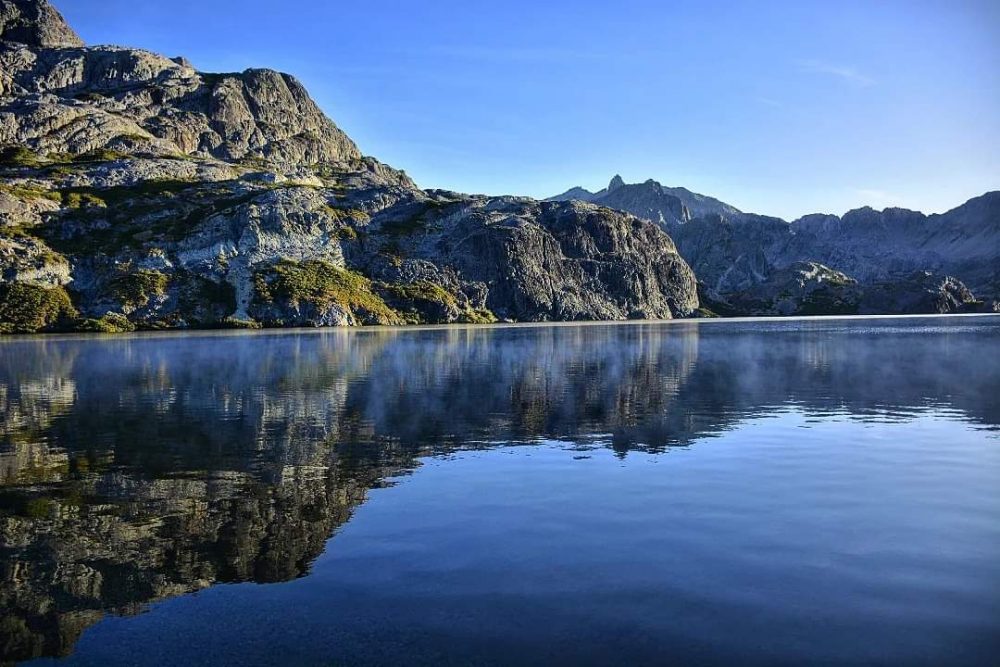 Laguna Quiriquina, más pequeña pero con una hermosura desbordante, nos recibió está belleza, con su peñasco en medio del cuerpo de agua, una Vega verde llena de pajaritos y otro chapuzón hoy bien A.M. ayayaiiiiii que quedamos recargados, después de pasar la noche en la casa de piedra junto a don Alejandro y sus fieles compañeros subimos para recibir el solcito en este lugar especial ❤️