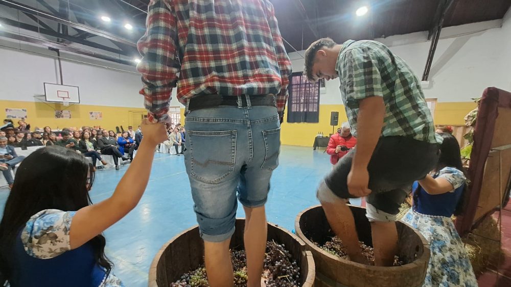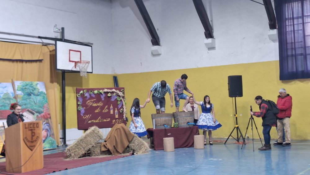 El momento más emotivo y pintoresco de la actividad fue la recreación de la vendimia de antaño, realizada por los propios alumnos de la carrera de Agropecuaria. Con vestimentas típicas, los estudiantes demostraron a los asistentes el proceso tradicional de la pisada de la uva, imitando las técnicas utilizadas por generaciones pasadas para la extracción del mosto. Esta demostración no solo fue un espectáculo visual, sino una lección viva de historia y cultura local.